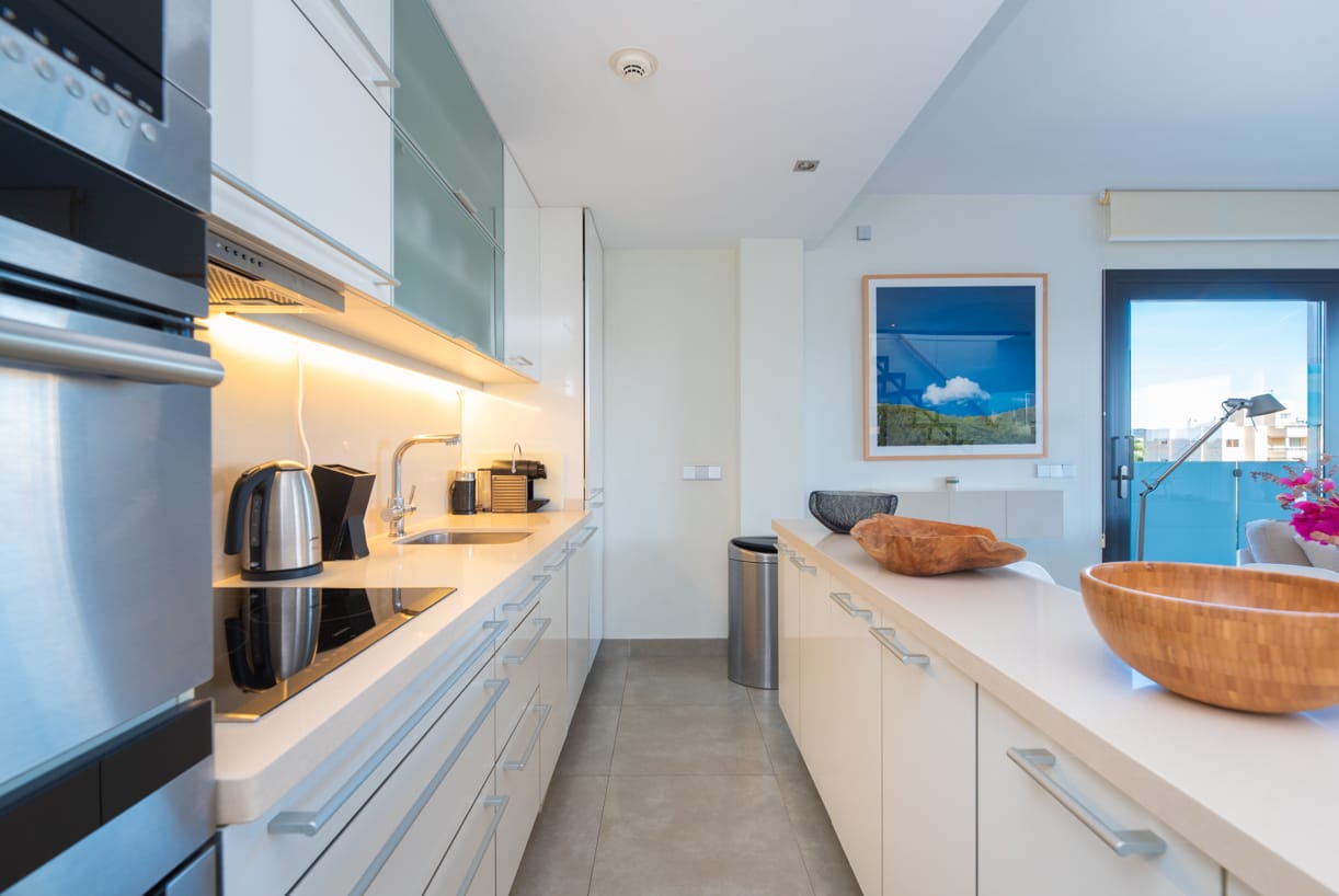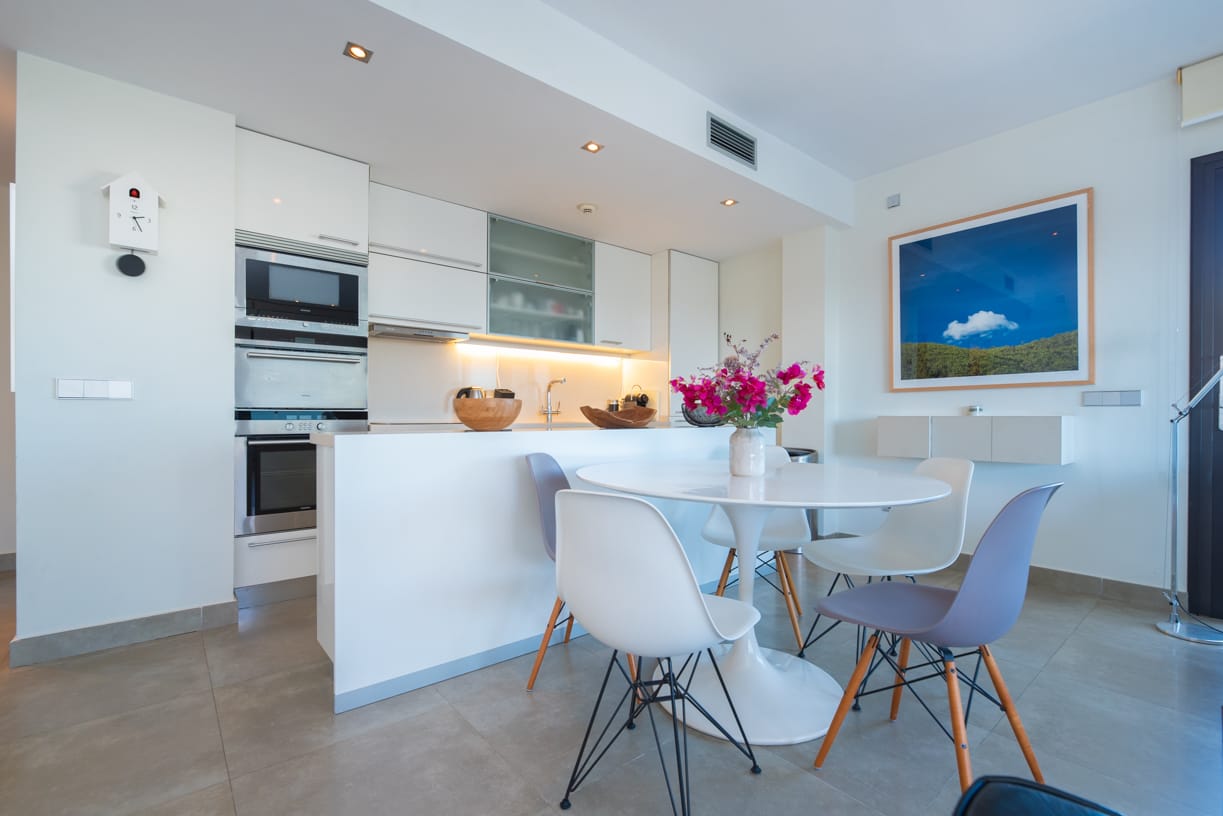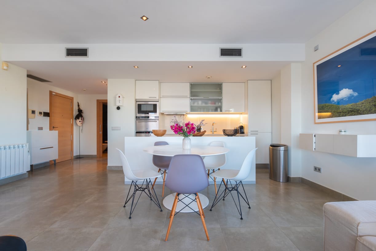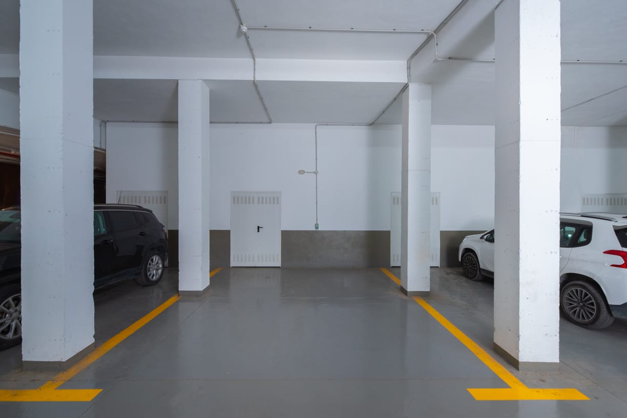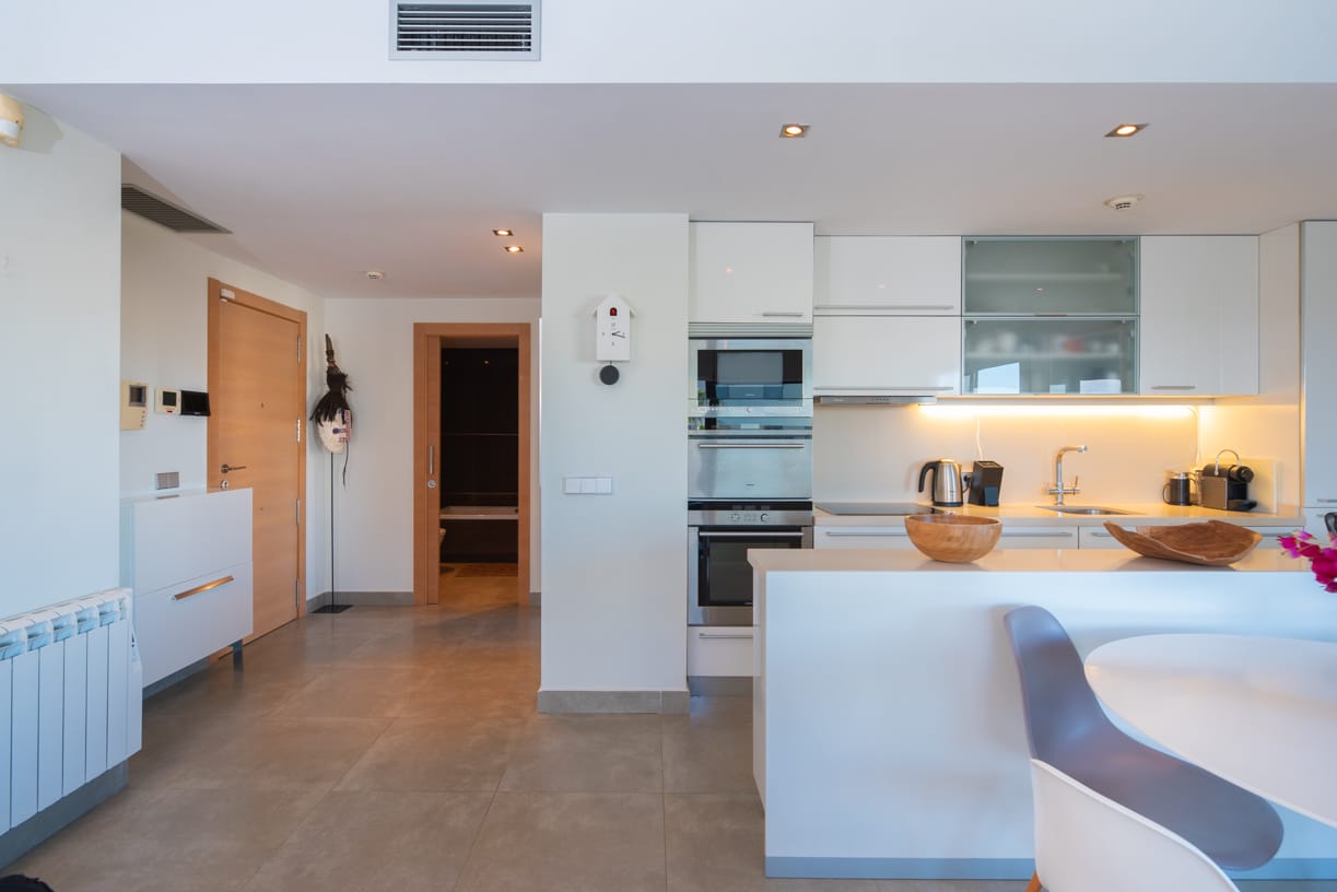 ZUGANG, EINGANG UND PARKPLATZ Die private und geschlossene Gemeinschaft, bekannt für ihren ausgezeichneten Ruf auf der Insel, bietet sicheren Zugang durch einen kontrollierten Eingang. Bei der Ankunft spürt man sofort ein Gefühl von Exklusivität und Luxus, mit einem komfortablen Tiefgaragenstellplatz mit einer Deckenhöhe von 4 Metern. Neben dem Parkplatz steht auch ein privater Abstellraum von 10 m² zur Verfügung.