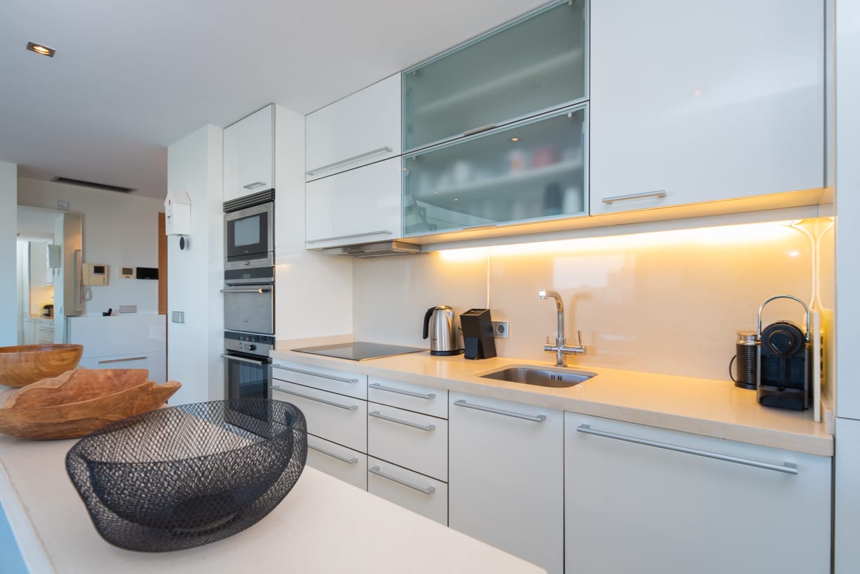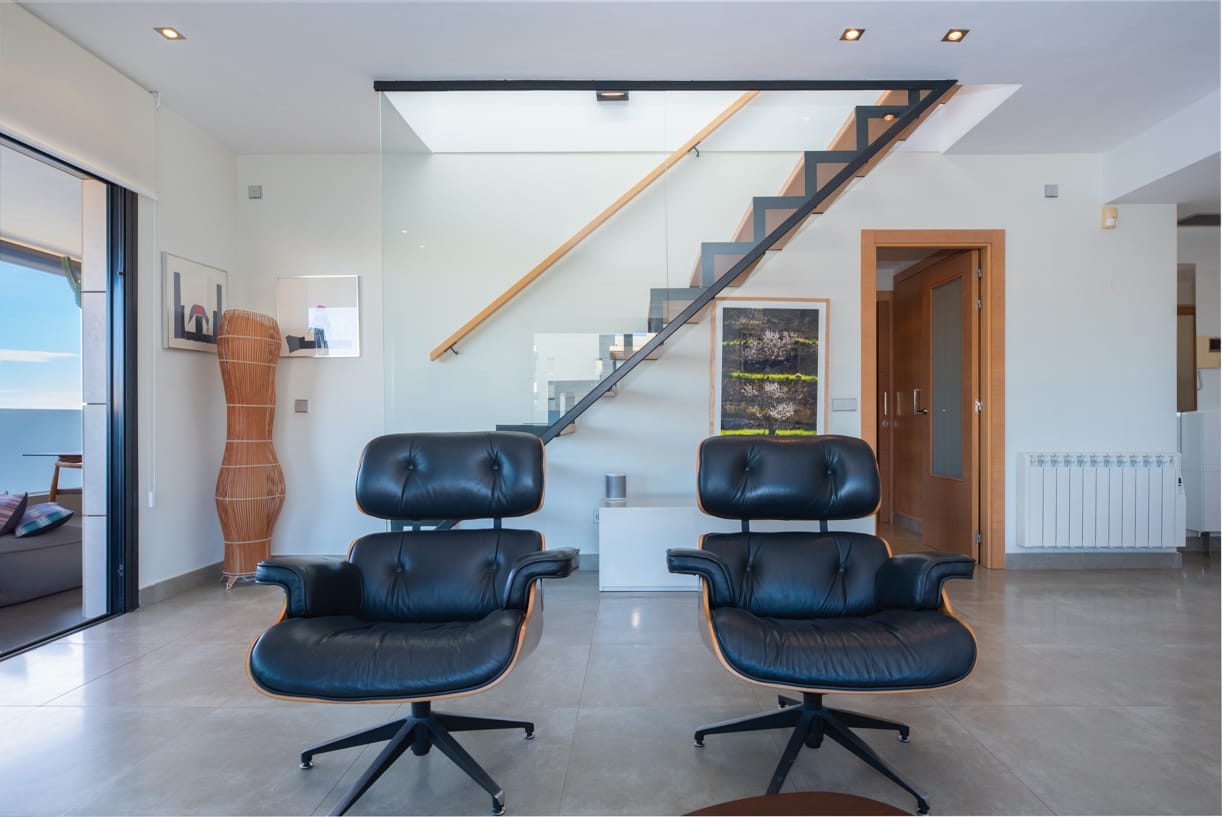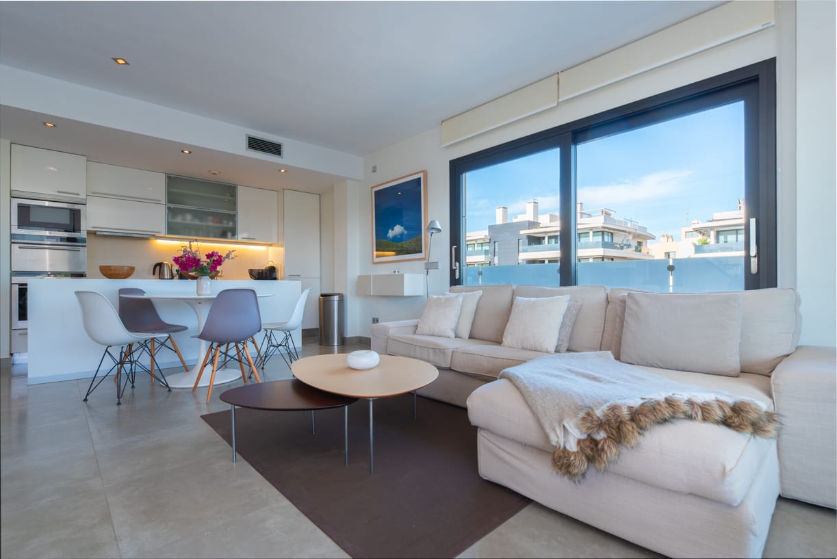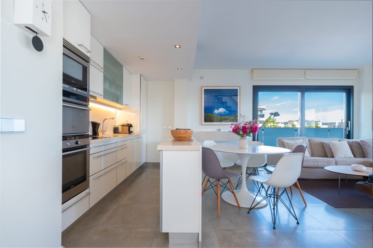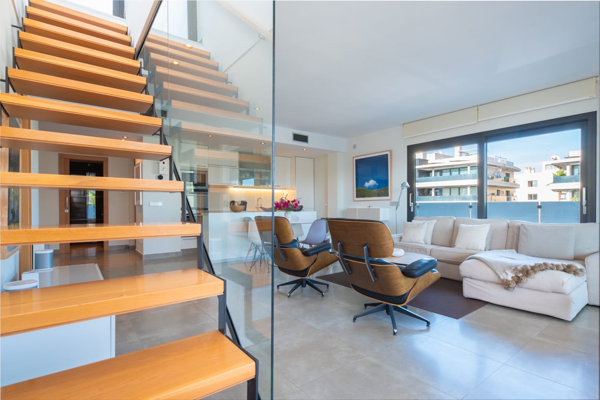 ZUGANG, EINGANG UND PARKPLATZ Die private und geschlossene Gemeinschaft, bekannt für ihren ausgezeichneten Ruf auf der Insel, bietet sicheren Zugang durch einen kontrollierten Eingang. Bei der Ankunft spürt man sofort ein Gefühl von Exklusivität und Luxus, mit einem komfortablen Tiefgaragenstellplatz mit einer Deckenhöhe von 4 Metern. Neben dem Parkplatz steht auch ein privater Abstellraum von 10 m² zur Verfügung.