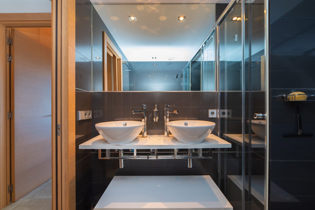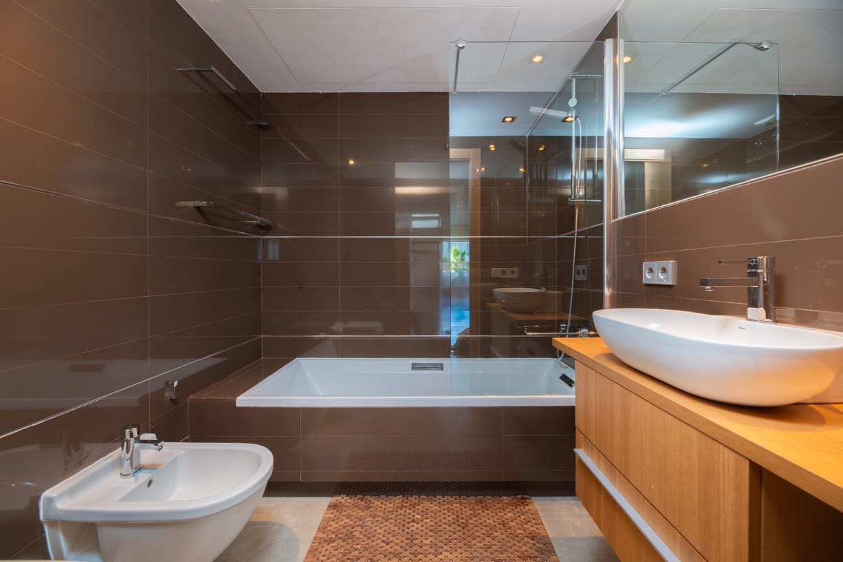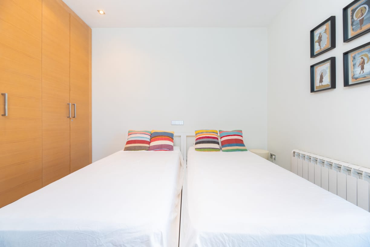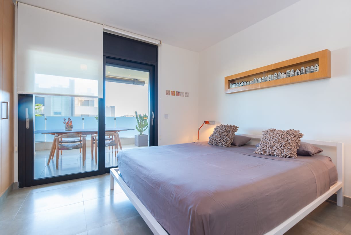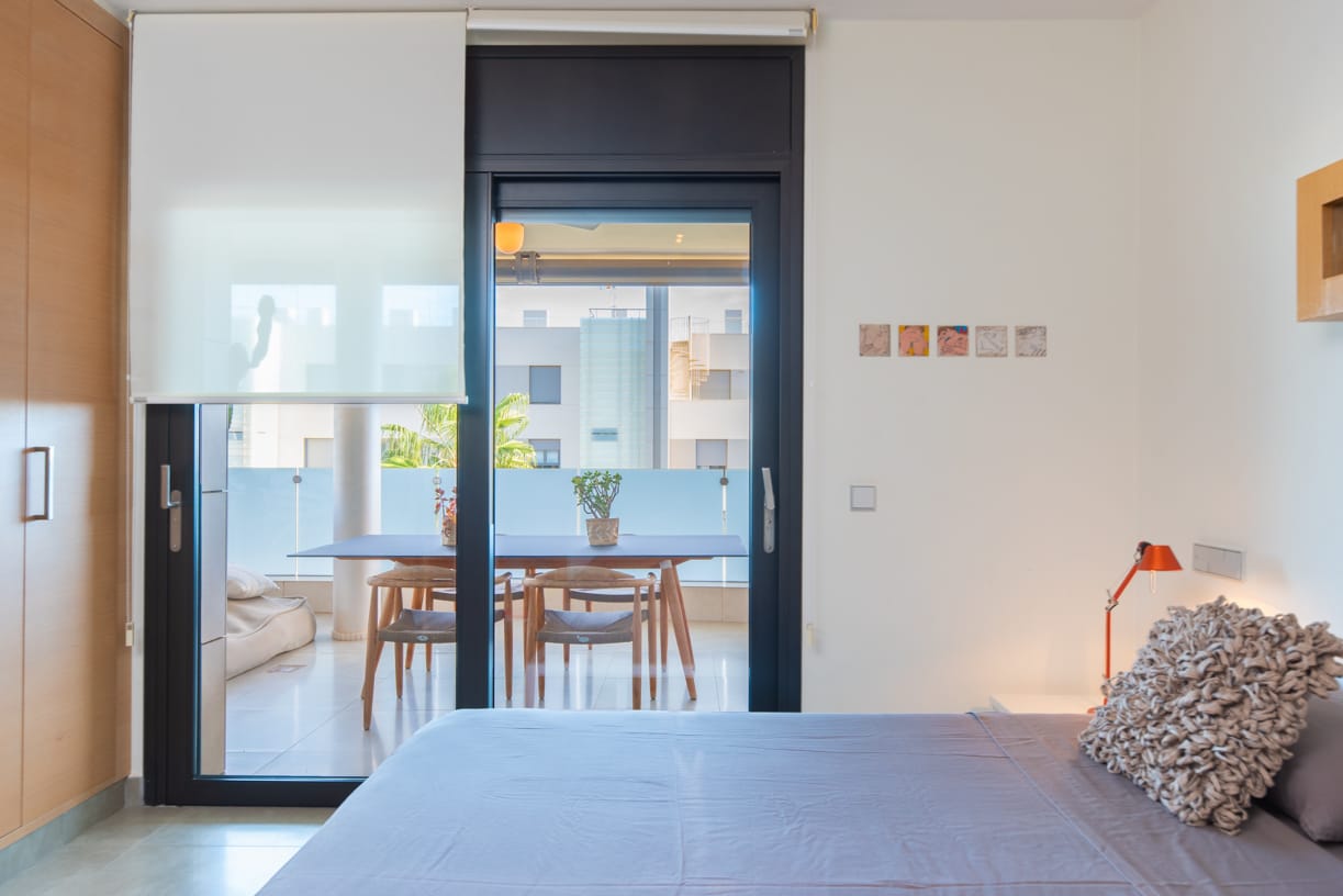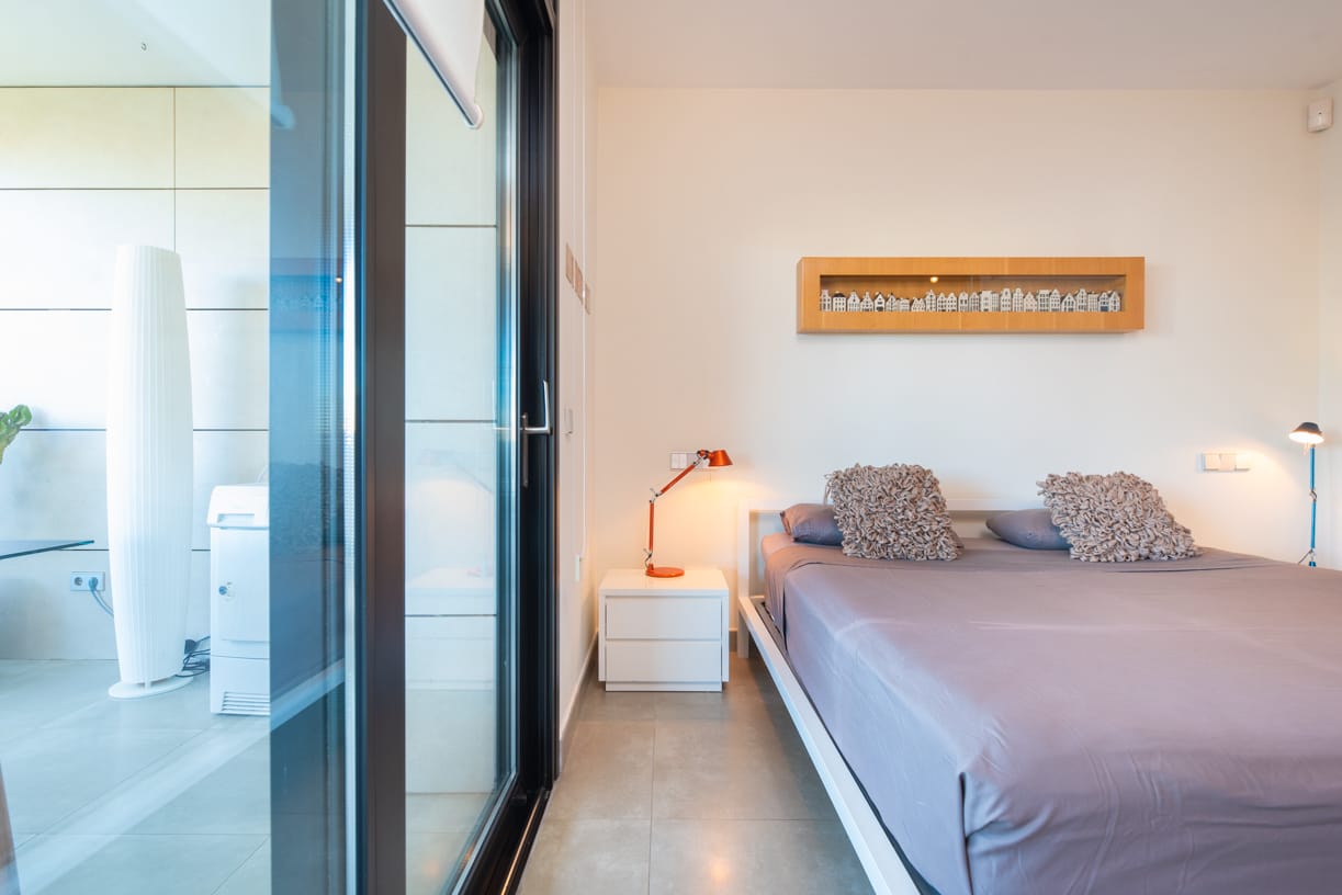 Das Hauptschlafzimmer verfügt über ein eigenes Bad und einen privaten Zugang zur 23 m² großen Außenterrasse, während ein nahegelegenes zweites Schlafzimmer mit zwei Einzelbetten von einem gemeinsamen Bad bedient wird, was sowohl Privatsphäre als auch Komfort gewährleistet.