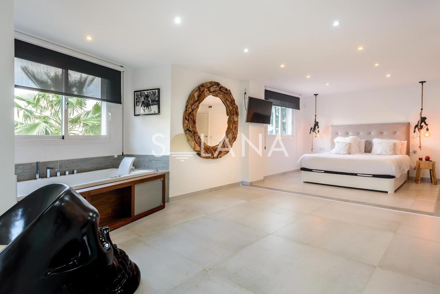 • A luxurious and expansive master bedroom complete with a spacious dressing room, Jacuzzi, en suite bathroom, and access to a charming small terrace
