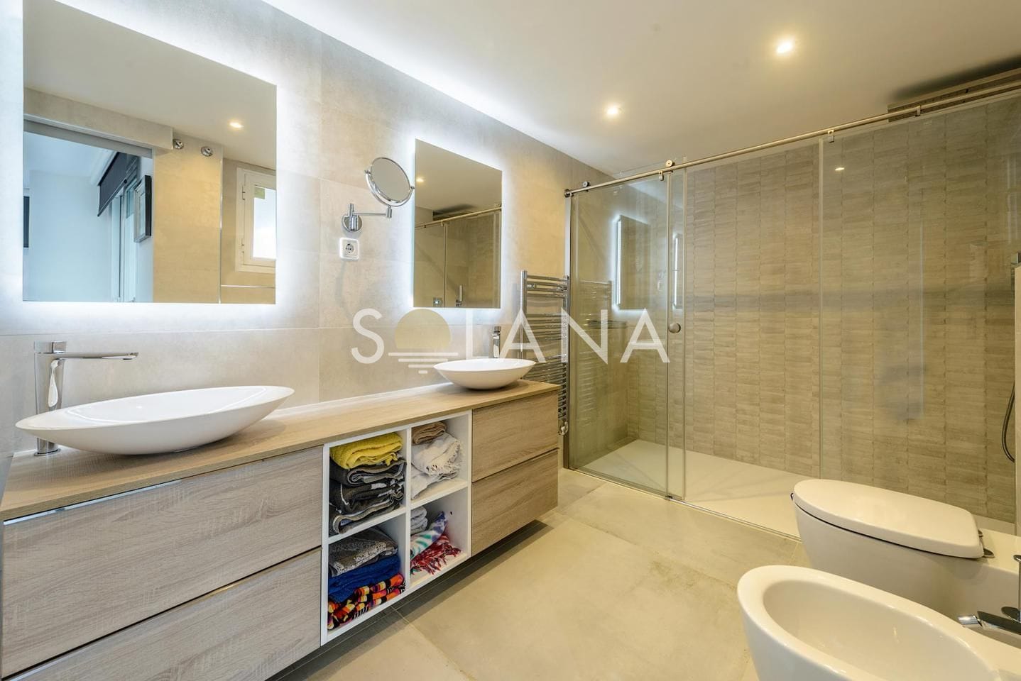 • Automatic blinds for effortless light control and privacy